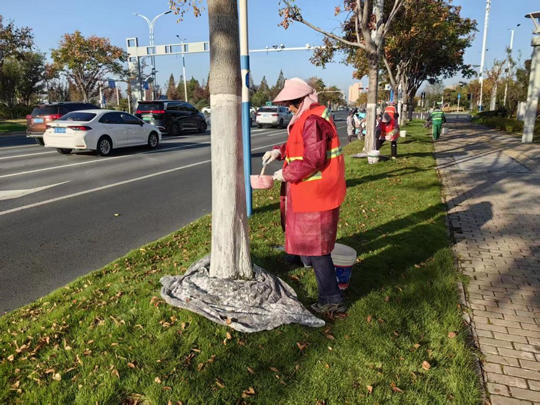 隨著氣溫逐步降低,建發(fā)公司全面啟動(dòng)樹木涂白工作,為道路、公園、廣場及景觀帶的喬灌木穿上抗凍防寒、抵御病蟲害的“防護(hù)衣”,以保障其安全越冬,提高保存率,進(jìn)一步擦亮城市生態(tài)底色。