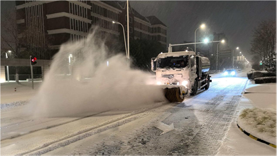 為確保城市主干道及橋梁暢通,建發(fā)公司緊抓夜間作業(yè)窗口,秉持“人歇車不歇”原則,調(diào)配精良設(shè)備與人員,對易結(jié)冰的橋面及主干道進(jìn)行高強(qiáng)度清除作業(yè)。作業(yè)人員利用后半夜車流較少的時(shí)機(jī),集中操作雪滾車、撒布機(jī)等設(shè)備,并同步在關(guān)鍵路口鋪設(shè)防滑墊。截至20日17時(shí),累計(jì)投入各類機(jī)械16臺、作業(yè)人員320名,撒布融雪劑60噸,有效保障了主要道路的安全通行。